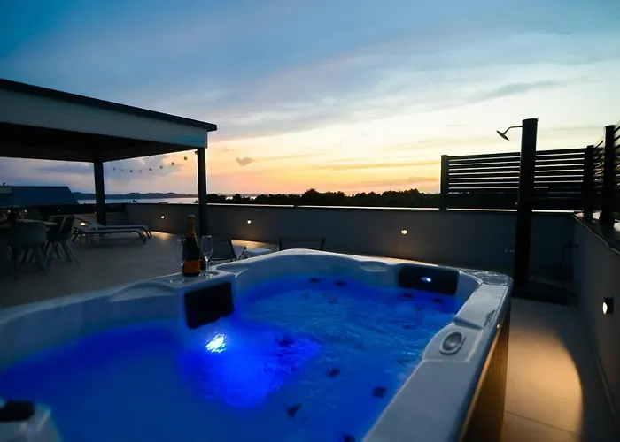 Rooftop apartment Jadera - AE1443 ligt in Zadar, op ongeveer 2 km van de Kerk van Onze-Lieve-Vrouw der Gezondheid, en geeft gasten een bubbelbad. Dit appartement van 107 m^2 ligt op ongeveer 10 minuten rijden van de Kerk van St. Donat in Zadar.